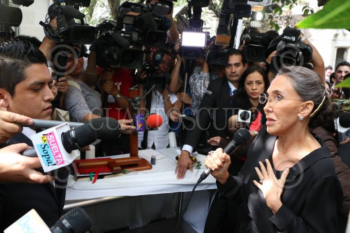 MÉXICO, D.F., 27NOVIEMBRE2015.- Amigos y familiares del comediante Roberto Gómez Bolaños realizaron una misa para recordar el primer año del fallecimiento de "Chespirito", al termino de la homilía se suscito un altercado con medios de comunicación que intentaban entrevistar a Florinda Meza. FOTO: SAÚL LÓPEZ /CUARTOSCURO.COM