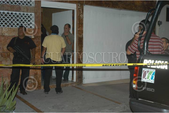 VERACRUZ, VERACRUZ. 29ENERO2009.- Durante la madrugada de este jueves fue ultimado de dos balazos el empresario joyero, José Antonio Yunes Zamudio, primo hermano del director general del ISSSTE, Miguel Ángel Yunes Linares. Los hechos se registraron al interior de la casa marcada con el numero 239 de la calle de Zumarraga, entre Américas y Católica, del fraccionamiento Reforma al sur de la esta ciudad, donde alrededor de las siete treinta de la noche una mujer y tres sujetos amagandola y sometieron también a los señores María del Pilar Zamudio de Yunes y a su esposo José Luis Yunes Faisal de 81 y 82 años de edad, respectivamente, exigiendo les dieran la combinación de la caja fuerte, a la cual se negaron así que esperaron por espacio de hora y media la llegada del empresario, quien al descubrir el robo opuso resistencia por lo que con una pistola escuadra calibre 38 mm. súper lo asesinaron. Acto seguido abrieron la caja fuerte con un soplete para apoderarse de dos millones de pesos así como 200 mil pesos en efectivo para después darse a la fuga a bordo de un automóvil Chevrolet Malibu color azul sin placas propiedad del ahora finado. FOTO: JOSÉ CANDELARIO/CUARTOSCURO.COM