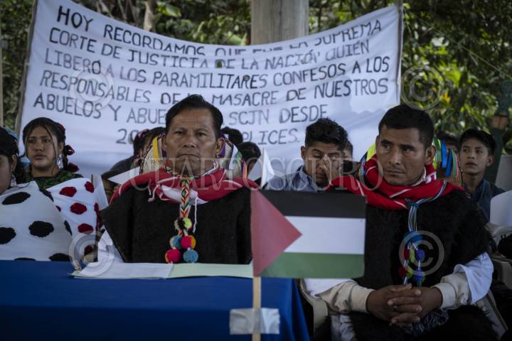 CHENALHÓ, CHIAPAS, 12AGOSTO2025.- Las y los jóvenes integrantes de la organización Sociedad Civil de las Abejas de Acteal, convocaron a una conferencia de prensa en La Casa de la Memoria y la Esperanza, en donde aseguraron que la Suprema Corte de Justicia, desde el año 2009, ha sido cómplice en el silenciamiento de la masacre cometida contra los en la comunidad de Acteal en 1997, al dejar en libertad a los actores materiales de los asesinatos, y al no forzar la justicia para esclarecer los hecho y enjuiciar a los actores materiales como Ernesto Zedillo Ponce de León y sus cómplices. Los anicianos aseguraron que su lucha “no tiene fecha de caducidad”, y que “los gobiernos no deben esperar sus muertes porque la lucha continuará en la voz y las manos de sus hijos, de sus nietos”. FOTO: ISABEL MATEOS HINOJOSA /CUARTOSCURO.COM