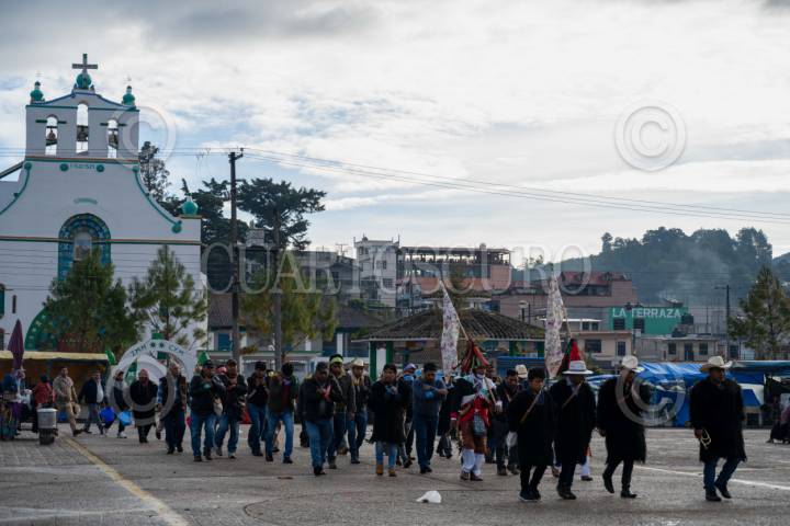 SAN JUAN CHAMULA, CHIAPAS, 18SEPTIEMBRE2025.- Muy temprano, antes del amanecer en las calles del barrio de San Sebastián, los hombres y mujeres se reúnen en la casa del Paxón —autoridad máxima y espiritual del barrio—. Desde allí, un grupo de hombres encargados de esta tarea, cargan con cuidado las vasijas de barro, vacías aún, y emprenden en silencio la caminata hacia el ojo de agua sagrado, ubicado a unos 200 metros de la iglesia principal de la cabecera municipal. Este recorrido no es solo físico, sino también espiritual: cada paso prepara el cuerpo y el alma para recibir el agua que purificará lo sagrado. FOTO: ISABEL MATEOS HINOJOSA /CUARTOSCURO.COM