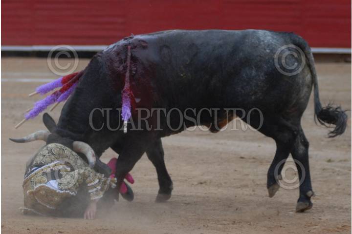 MÉXICO, DF., 06JUNIO2010.- Michelito Lagravere, novillero yucateco, fue embestido en su debut durante la corrida del primer paseíllo de la Temporada Chica 2010, en el serial denominado "De Toro, menos Fútbol". Esto, en la Monumental Plaza de Toros México. FOTO: GENARO GONZÁLEZ/CUARTOSCURO.COM