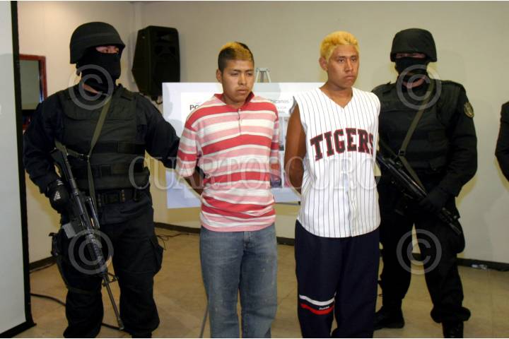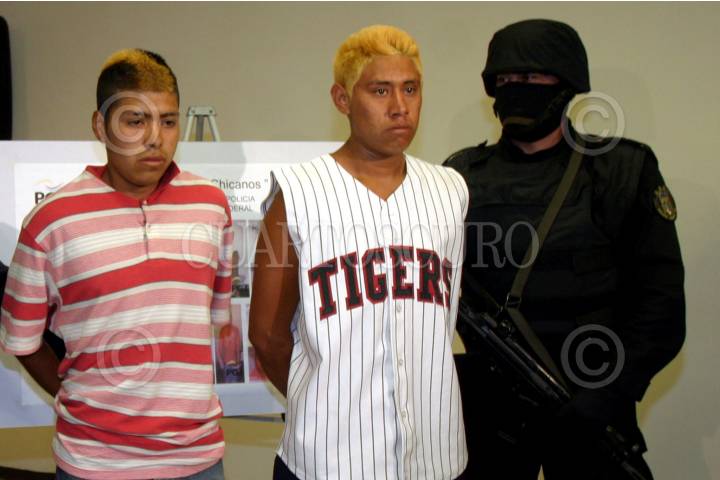 MÉXICO, D.F., 14NOVIEMBRE2007.- Miguel Angel Damián Alvarado, de 21 años y Jesús Rogelio Santillan de 18 años, son miembros de una banda delictiva denominada "Los Chicanos" presuntos responsables del homicidio de Luis Miguel Sánchez Acosta de 17 años quien fue asesinado afuera de su escuela ubicada en avenida Taxqueña por robarle su celular el pasado 24 de Octubre. FOTO: PEDRO MARRUFO/CUARTOSCURO.COM