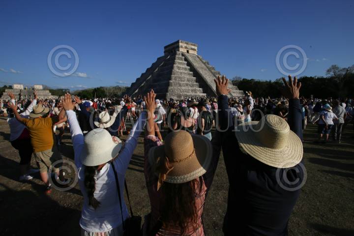 Miles de turistas se congregaron en la Zona Arqueológica de Chichén Itzá para recibir el equinoccio de primavera.