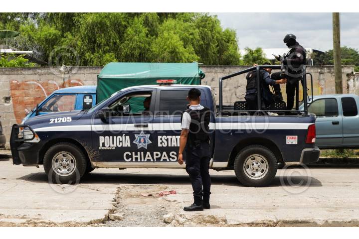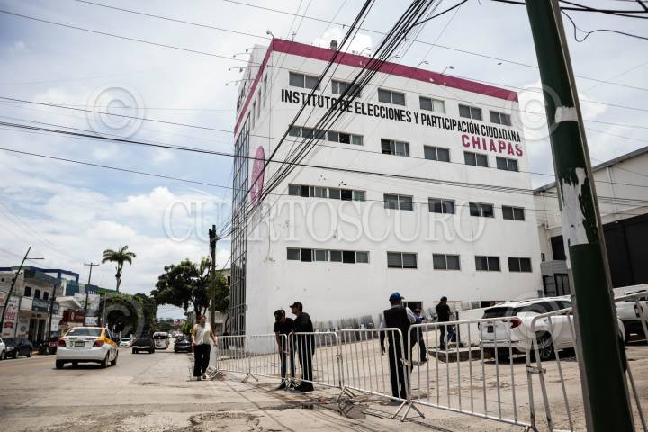 TUXTLA GUTIÉRREZ, CHIAPAS. 26AGOSTO2024.- Las boletas de la elección extraordinaria celebrada ayer domingo en Chicomuselo, en la Sierra de Chiapas llegaron hoy en un vehículo que fue resguardado por la policía estatal, hasta la sede del Instituto de Elecciones y Participación Ciudadana (IEPC), ante la narcoviolencia que hay en el municipio. La paquetería para renovar Ayuntamiento, fue sacada de Chicomuselo en helicóptero, mientras que la oficina central del IEPC continua resguardada por elementos policiacos desde ayer. FOTO: DAMIÁN SÁNCHEZ/CUARTOSCURO.COM