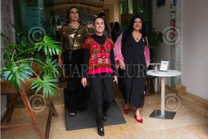 Claudia Sheinbaum, jefa de Gobierno; Alejandra Frausto, secretaria de Cultura y Mariana Aymerich, directora del FIC, durante su llegada a la inauguración de la "Casa Ciudad de México, Casa Chilanga" la cual contará con diversas actividades culturales en el marco del 50 Festival Internacional Cervantino (FIC).