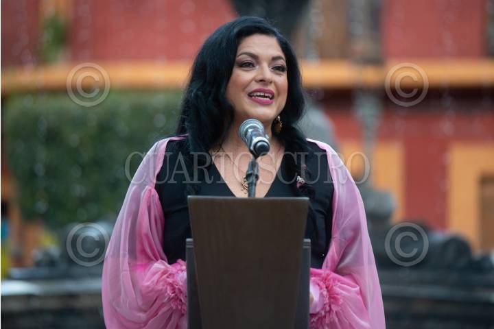 Alejandra Frausto, secretaria de Cultura, durante la inauguración de la "Casa Ciudad de México, Casa Chilanga" la cual contará con diversas actividades culturales en el marco del 50 Festival Internacional Cervantino (FIC).