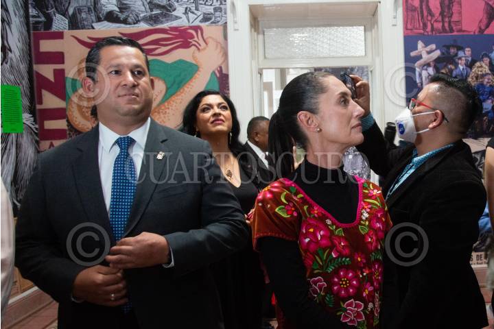 Claudia Sheinbaum, jefa de Gobierno de la capital; Alejandra Frausto, secretaria de Cultura, y Diego Sinhue Rodríguez, gobernador de Guanajuato, encabezaron la inauguración de la "Casa Ciudad de México, Casa Chilanga" la cual contará con diversas actividades culturales en el marco del 50 Festival Internacional Cervantino (FIC).