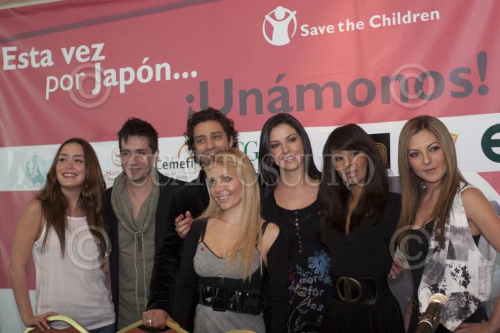 MÉXICO D.F., 23MARZO2011.- Los integrantes del grupo musical OV7, acompañados de Ricardo Reynosa López, del Centro Mexicano de Filantropía y Ma. Josefina Menéndez Carbajal de CEO Save the Children, dieron a conocer los detalles de la campaña “Esta vez por Japón”…¡Unámonos! En el que se promocionan la donación voluntaria en cuentas bancarias para ayudar a los niños afectados por los desastres naturales ocurridos el 11 de Marzo. FOTO: GUILLERMO PEREA/CUARTOSCURO.COM
