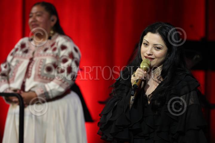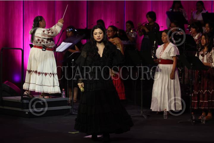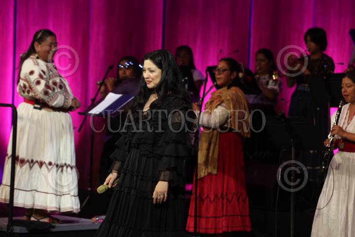 CIUDAD DE MÉXICO, 09DICIEMBRE2023. Mon Laferte y Mujeres del viento florido se presentaron en un concierto de intercambio cultural entre México y Chile, en el Palacio de Bellas Artes. Dónde además de escuchar temas compuestos por la cantautora chilena-mexicana, se interpretó un repertorio de música mexicana. FOTO: EDGAR NEGRETE LIRA/CUARTOSCURO.COM