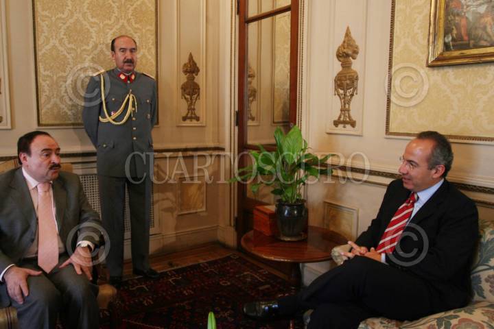 SANTIAGO DE CHILE, 5 DE OCTUBRE 2006. El presidente electo de México, Felipe Calderón Hinojosa durante la reunión que sostuvo con el diputdo Antonio Leal Labrin, presidente de la Cámara de Diputados de la República de Chile. FOTO: ALFREDO GUERRERO/CUARTOSCURO.COM