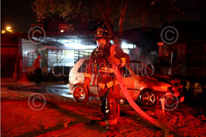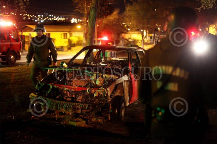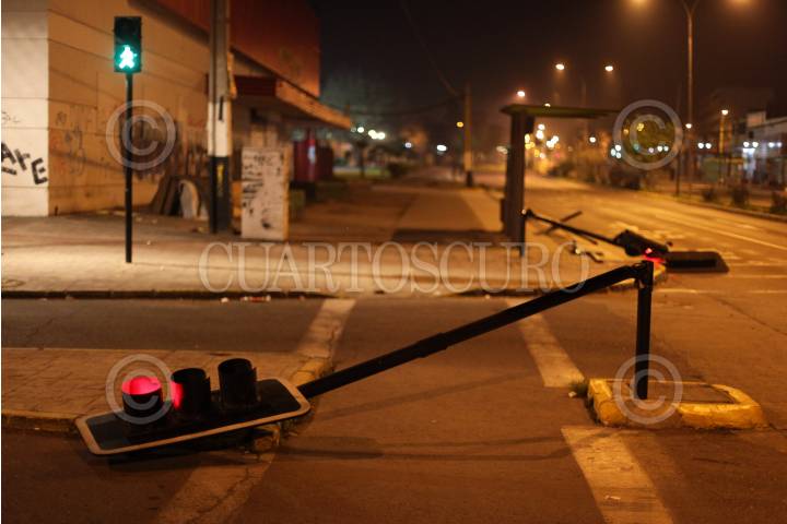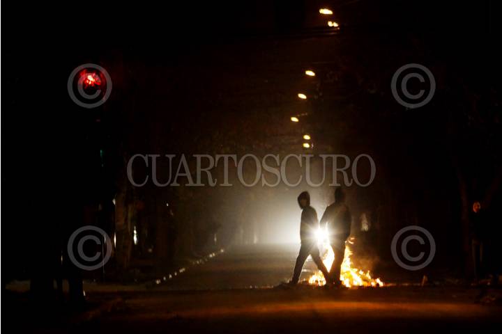 SANTIAGO, CHILE., 12SEPTIEMBRE2015.- Esta madrugada se registraron vehículos incendiados, cortes de energía eléctrica, disparos y barricadas levantadas en varios puntos de Santiago y otras ciudades de Chile, durante la jornada de conmemoración del 42 aniversario del golpe militar que derrocó a Salvador Allende. Los incidentes más graves se registraron en los municipios de Peñalolén, La Reina, San Bernardo, Cerro Navia, Estación Central y Huechuraba, situados en la Región Metropolitana, donde se concentra un tercio de la población de país. Carabineros de Chile informó que uno de sus elemento resultó herido en los enfrentamientos. FOTO: FÉLIX MÁRQUEZ /CUARTOSCURO.COM