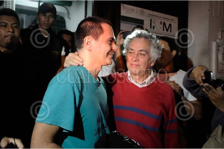 VERACRUZ, VERACRUZ, 29NOVIEMBRE2014.- La noche de éste sábado, el chileno, Lawrence Maxwell, detenido durante la manifestación en apoyo a Ayotzinapa del pasado 20 de noviembre en la Ciudad de México, quedó en libertad luego de ser trasladado desde el penal de Villa Aldama hasta el Instituto Nacional de Migración en el puerto de Veracruz. FOTO: FÉLIX MÁRQUEZ /CUARTOSCURO.COM