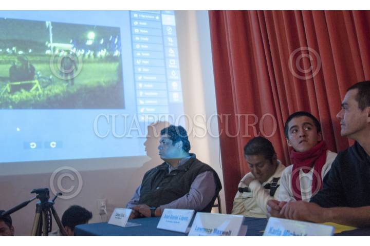 XALAPA, VERACRUZ 28NOVIEMBRE14.- Alberto Maxwell, padre del estudiante chileno Laurence Maxwell detenido durante la marcha del 20 de Noviembre en el DF y trasladado al penal de Villa Aldama en Veracruz informó esta noche en conferencia de prensa acompañado por Juan Francisco López Nepomuceno padre de Juan David López Avila, y sus abogados que fueron presentadas pruebas legales aprobadas por la Comisión Nacional de Derechos Humanos (CNDH) y de la Comisión de Derechos Humanos del Distrito Federal (CDHDF) sobre la inocencia de sus hijos y los 6 estudiantes más que fueron trasladados el Penal de alta seguridad, comentó que solo están en espera del veredicto del juez décimo séptimo de Distrito de Veracruz, Juan Carlos Ramírez, antes de las 12 horas de este sábado. FOTO: RUBÉN ESPINOSA /CUARTOSCURO.COM