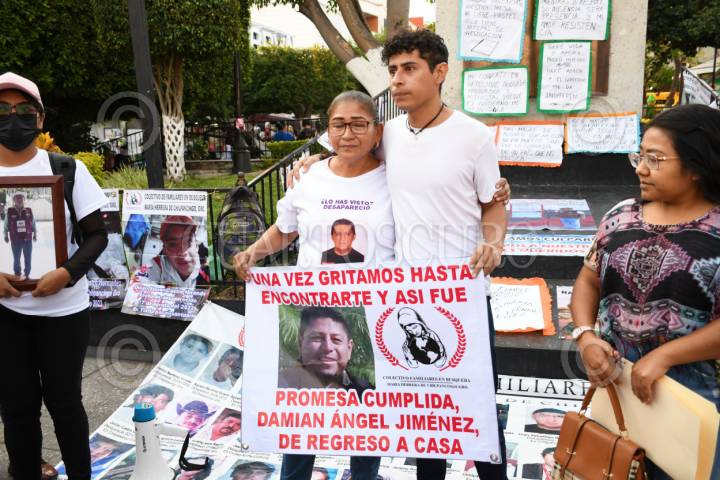 CHILPANCINGO, GUERRERO, 09MAYO2025.- El Colectivo Familiares en Búsqueda María Herrera informó que identificaron el cuerpo de Damian Ángel Jiménez, quien fue privado de su libertad el 4 de noviembre del 2018 en la colonia Vista Hermosa en Chilpancingo. El cuerpo del padre de familia fue hallado tres días después de su desaparición en un camino hacia Amojileca, es decir estuvo 8 años en el Servicio Medico Forense (Semefo), sin identificar. Brayan Maximiliano Ángel Jiménez, hijo mayor de Damian se unió al colectivo en el 2024 porque buscaba a sus padres, su mamá la maestra Mara Carachure Jiménez desapareció un año después que su papá (el 26 de junio del 2019) cuando viajaba con tres de sus compañeros de trabajo al puerto de Acapulco a realizar unos trámites. El año pasado fue localizada en una fosa común en el puerto de Acapulco pero las autoridades aún no han entregado el cuerpo a sus hijos. Desde la desaparición de sus padres Brayan quien tenía en ese época 21 años de edad se quedó a cargo de su hermana de 16 años y de su hermano de 17, dejó de estudiar para trabajar y mantener a sus hermanos. Gemma Antúnez Flores, representante del colectivo, indicó que ayer el Ministerio Público le llamó por teléfono para informarle que habían realizado la confronta de los tres hijos de Damian Ángel y fue positiva. Este viernes Gemma Antúnez le dio la noticia a Brayan que su papá había sido localizado. Actualmente Brayan tiene 27 años, su hermana 20 y su hermano 21. En entrevista, Brayan relató que fueron días difíciles cuando desapareció primero su papá, porque su familia se fragmento y cuando desapareció su mamá quedaron desamparados. Indicó que cuando se unió al colectivo se enteró que su mamá no interpuso denuncia ante las autoridades por la desaparición de su papá. El mayor de los tres hermanos, declaro que esta “asimilando las cosas, siento un poco de tranquilidad porque ya no tengo la incertidumbre de no saber en donde