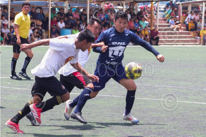 CHILPANCINGO, GUERRERO, 31MAYO2025.- El equipo Veca F.C. clasificó a la final del Torneo de los Grandes de Chilpancingo tras echar la casa por la ventana al fichar al ex jugador del Cruz Azul, César Villaluz Martínez, quien fuera parte del seleccionado nacional y campeón del mundo en la categoría Sub 17. Gracias al plantel, que contó también con jóvenes experimentados que jugaron en la Liga Premier y la Tercera División Profesional (TDP), derrotaron 2 goles a 1 al equipo del Deportivo San Juan, quien también contó con jugadores experimentados, tanto en el ámbito profesional como en la denominada "talacha". Fue con doblete del joven delantero Rafael Martínez que el equipo de Veca F. C. mantuvo al margen a sus rivales del Deportivo San Juan, quienes descontaron casi al final del encuentro, por la vía de los once pasos, cerrando el marcador 2 a 1, faltándole minutos para llevar el encuentro a la ronda de penales. Villaluz, previo al encuentro, en el medio tiempo y al final del partido, repartió fotografías y autógrafos a quienes se lo pidieron. FOTO: DASSAEV TÉLLEZ ADAME/CUARTOSCURO.COM