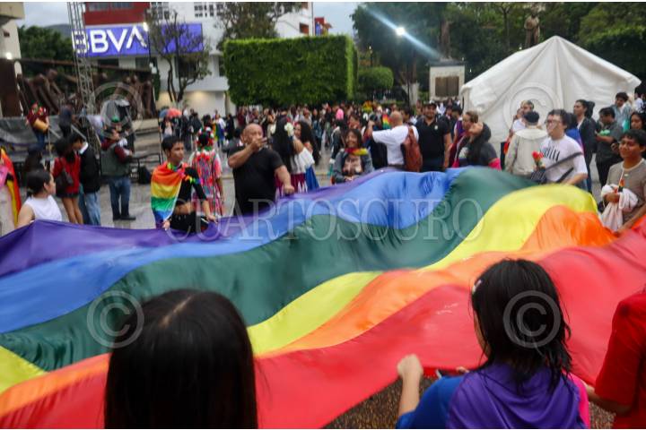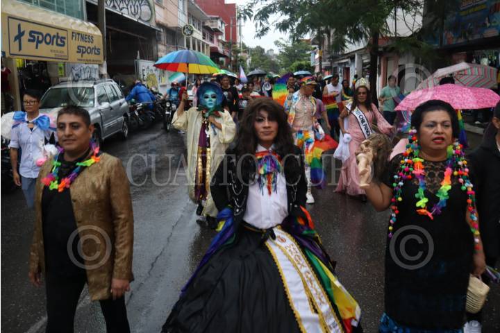 CHILPANCINGO, GUERRERO, 13JUNIO2025.- A pesar de la intensa lluvia registrada en la capital guerrerense, cientos de personas participaron en la 24ª Marcha Estatal de la Diversidad Sexual. La movilización, partió desde las inmediaciones del Congreso del Estado, donde previamente se realizó una mitin en el que se coronó a la reyna de esta edición ante activistas, representante de la comunidad y la presidenta de la Comisión de Derechos Humanos del Estado de Guerrero (CDHEG), Cecilia Narciso Gaytán. Bajo el lema "No hay orgullo sin las personas trans" y "Las vidas de las personas trans importan", los participantes exigieron el cese de los crímenes de odio y los asesinatos en contra de personas de la población LGBT. La jornada concluyó con un espectáculo cultural en la explanada del zócalo. FOTO: DASSAEV TÉLLEZ ADAME/CUARTOSCURO.COM