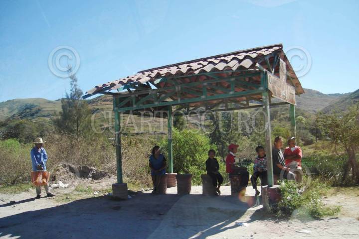 CHILAPA DE ALVAREZ, GUERRERO, 29DICIEMBRE2006.- Varias comunidades pertenecientes a este municipio ubicadas en la montaña baja del estado, han sufrido las inclemencias del tiempo, debido a las bajas temperaturas que se registran en la montaña y sierra del estado donde hasta el momento no se ha registrado ningun deceso por esta causa. En la imagen indigenas de la comunidad El Limon esperan su transporte, sobre la carretera federal Chilpancingo-Chilapa de Alvarez. FOTO: OSCAR ALVARADO/CUARTOSCURO.COM