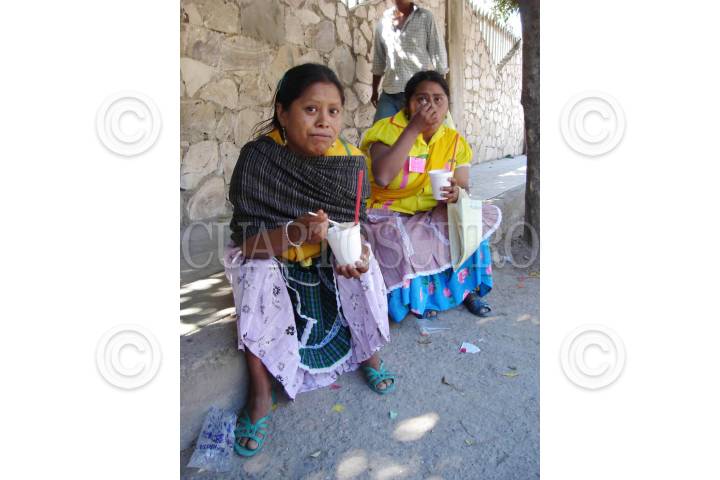 CHILAPA DE ALVAREZ, GUERRERO, 29DICIEMBRE2006.- Varias comunidades pertenecientes a este municipio ubicadas en la montaña baja del estado, han sufrido las inclemencias del tiempo, debido a las bajas temperaturas que se registran en la montaña y sierra del estado donde hasta el momento no se ha registrado ningun deceso por esta causa. En la imagen un par de mujeres indigenas disfrutan de un delicioso raspado a pesar del frio que se ha registrado en los ultimos dias. FOTO: OSCAR ALVARADO/CUARTOSCURO.COM