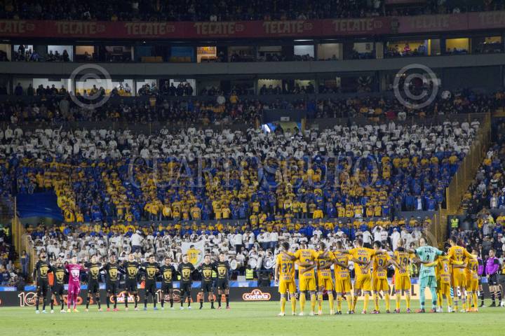 Jugadores de Tigres y Pumas honran a las víctimas del sismo en Turquía y Siria, en el estadio Universitario, previo al encuentro de la jornada 6 de la clausura 2023.