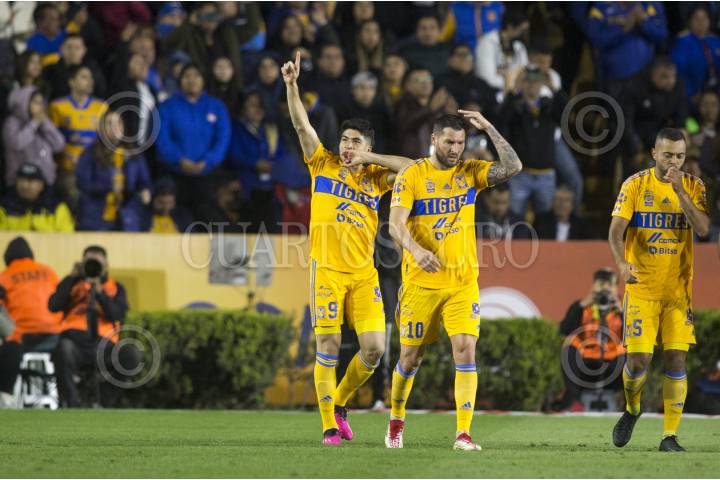 Jugadores de Tigres, festejan el gol ante Pumas, en el estadio Universitario, partido correspondiente a la jornada 6 de la Liga MX, Clausura 2023.