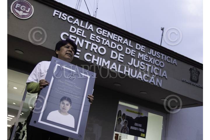 Lidia Florencio madre Diana joven víctima de feminicidio en 2017, durante la colocación de una placa en el Semefo de la Fiscalía de Chimalhuacán como parte de las medidas de reparación por la mala diligencia que realizó esta instancia en el caso de Diana Velázquez Florencio.