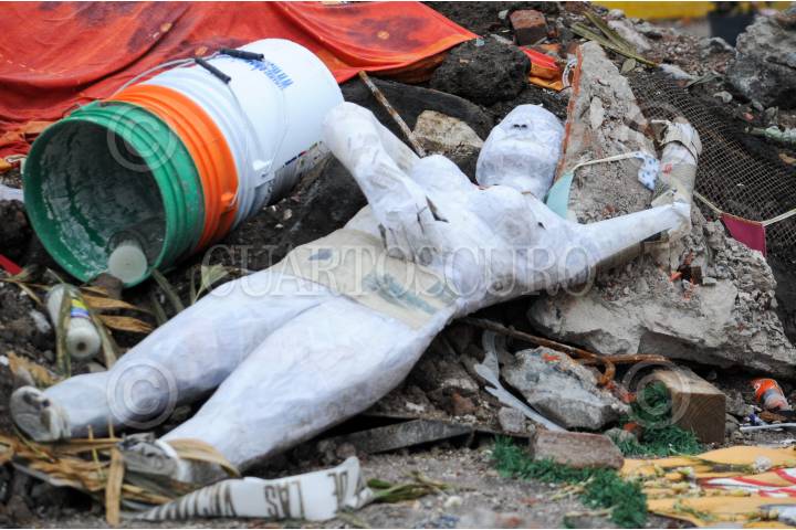 CIUDAD DE MÉXICO, 22SEPTIEMBRE2017.- Sociedad civil, rescatistas y elementos del Ejército terminaron de remover escombros en el edificio que colapsó en la calle de Chimalpopoca, en la colonia Obrera, luego del sismo de 7.1 grados Richter. Una voluntaria muestra una imagen religiosa que se encontr´o en el lugar. FOTO: ISAAC ESQUIVEL /CUARTOSCURO.COM