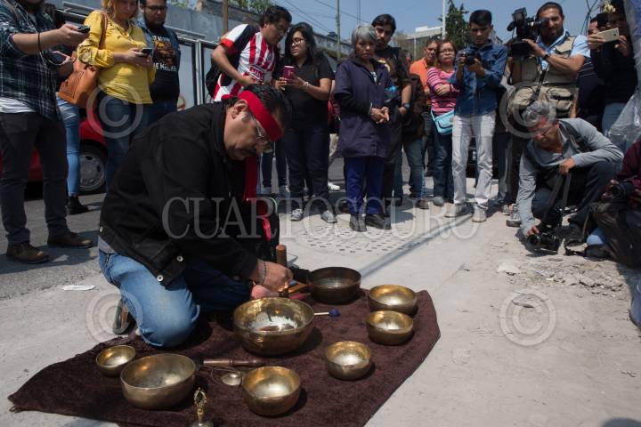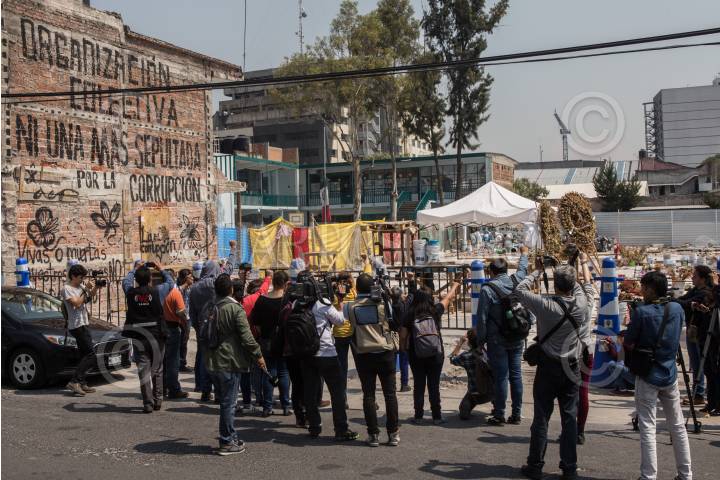 CIUDAD DE MÉXICO, 19OCTURBE2017.- Sociedad civil se dieron cita en el predio de Chimalpopoca y Bolívar, donde colapsó una fabrica de costureras por el sismo del pasado 19 de septiembre dejando decenas de mujeres muertas entre los escombros, esto con el propósito de rendir un homenaje luctuoso a todas la víctimas del terremoto. FOTO: TERCERO DÍAZ /CUARTOSCURO.COM