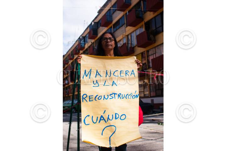 CIUDAD DE MÉXICO, 19NOVIEMBRE2017.- Los residentes del Multifamiliar Tlalpan que resultaron afectados por el sismo del 19 de septiembre, salieron a protestar por la indiferencia sobre su falta de viviendas, pues desde hace dos meses están viviendo en el estacionamiento del complejo habitacional. Las consignas gritan repudio hacia el programa de crédito para reconstruir sus casas, sugerido por el estado. Los damnificados exigen apoyo gratuito o ser incluidos en el Fondo de Desastres Naturales. FOTO: JESÚS VERDUGO /CUARTOSCURO.COM
