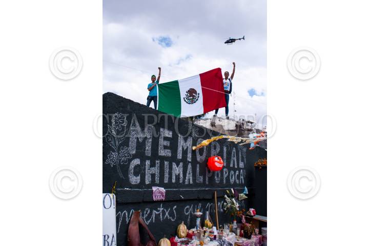 CIUDAD DE MÉXICO, 19NOVIEMBRE2017.- Los residentes del Multifamiliar Tlalpan que resultaron afectados por el sismo del 19 de septiembre, salieron a protestar por la indiferencia sobre su falta de viviendas, pues desde hace dos meses están viviendo en el estacionamiento del complejo habitacional. En la esquina de Chimalpopoca y Bolívar, una de las zonas mas afectadas, jóvenes subieron a lo alto del edificio derrumbado para cantar el cielito lindo. Más tarde se incorporó otro contingente para seguir marchando rumbo al Zócalo FOTO: JESÚS VERDUGO /CUARTOSCURO.COM