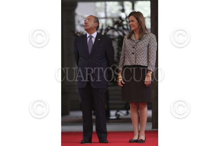 MÉXICO, D.F., 22AGOSTO2011.- Felipe Calderón Hinojosa, presidente de México; y Margarita Zavala de Calderón, durante la ceremonia oficial de bienvenida con motivo de la visita de Estado de la presidenta de la República de Costa Rica. FOTO: IVÁN STEPHENS/CUARTOSCURO.COM
