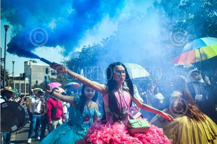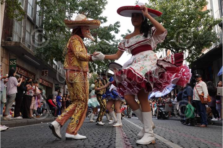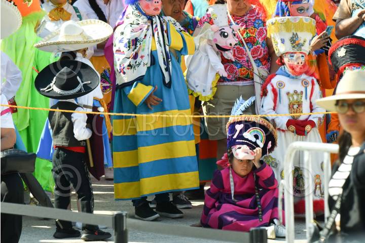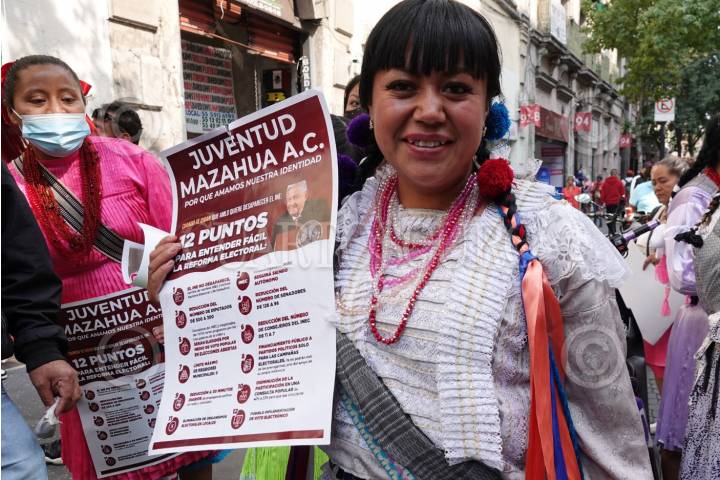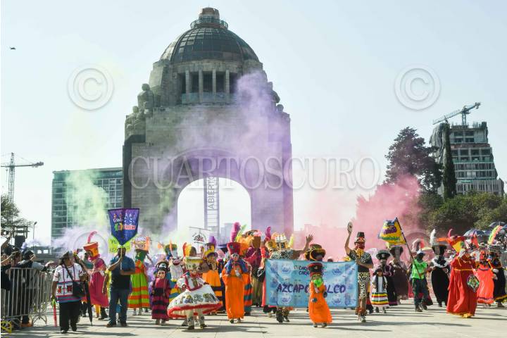 Chinelos realizaron una comparsa en apoyo a las mujeres mazahuas del estado de Toluca, quienes fueron recibidas por la jefa de gobierno Claudia Sheinbaum y en agradecimiento acudieron a las calles del Centro Histórico rumbo al Zócalo capitalino.