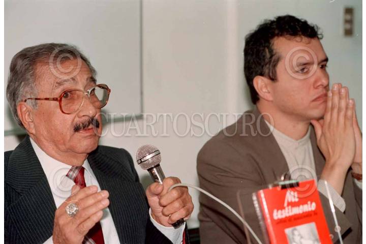 Angel Buendía, acompañado de Salvador Guererro, hermano del desaparecido periodista Manuel Buendía, presento el libro titulado "Mi Testimonio" en la Fraternidad de Reporteros de México.