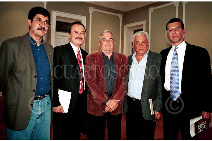 Javier Corral, Ricardo Rocha, Francisco Ortíz Pinchetti autor del libro, Francisco Prieto y Salvador Guerrero Chiprés, en la presentación del libro "De Pueblo en Pueblo" , en la casa Lamm. FOTO: Iván Meza/CUARTOSCURO.COM