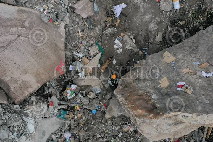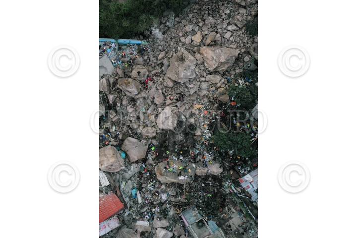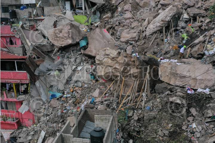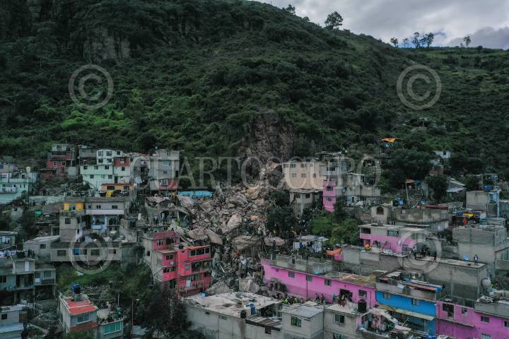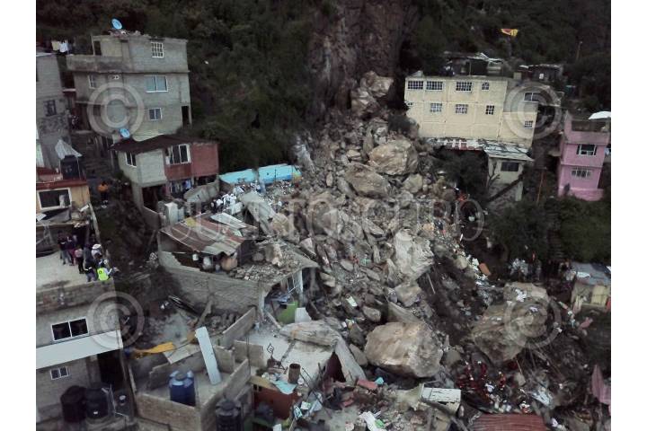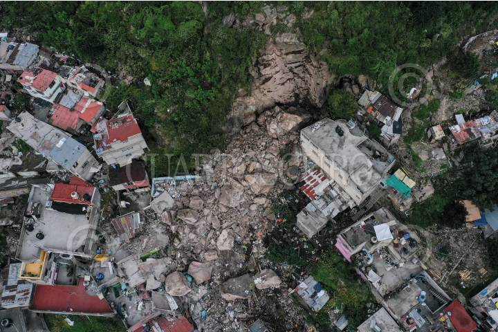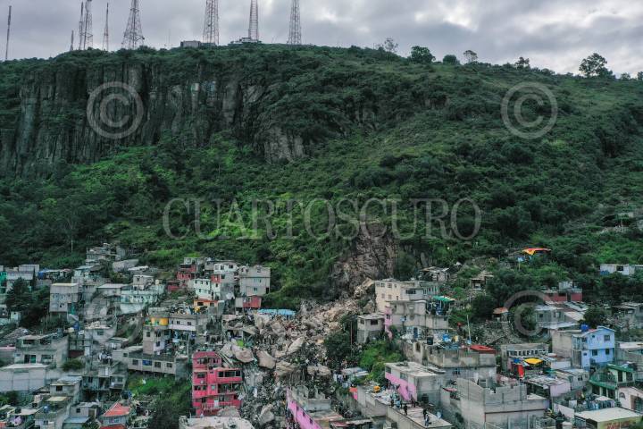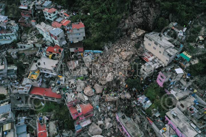 Toma aérea del deslave de una parte del cerro del Chiquihuite en donde continúan las labores de rescate en donde al menos 8 personas continúan desaparecidas.