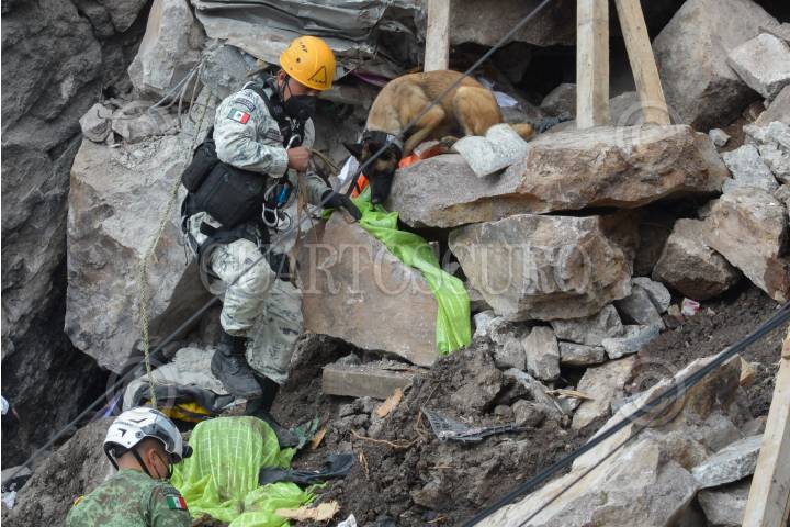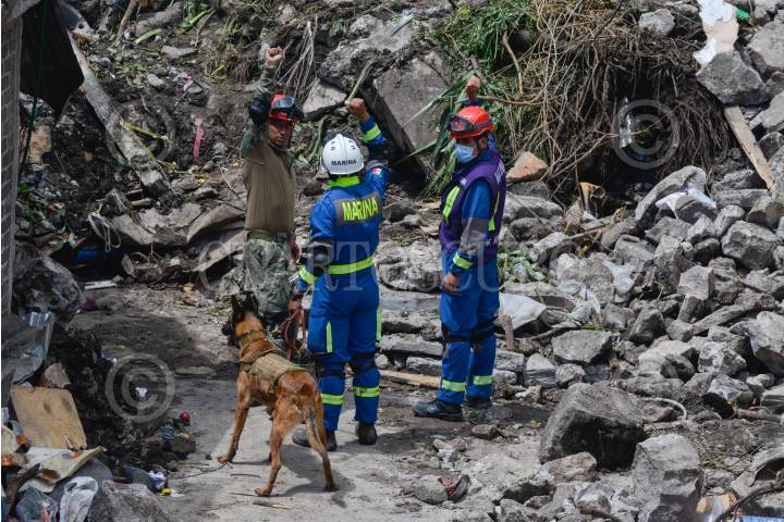Personal de la Secretarían de Marina-Armada de México participan en labores de auxilio a la población en el Municipio de Tlalnepantla, en donde varias casas fueron afectadas por un desgajamiento del cerro del Chiquihuite.