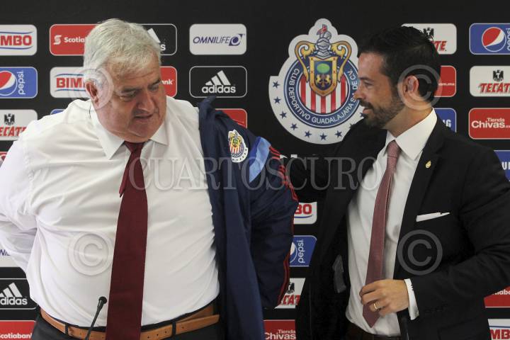 GUADALAJARA, JALISCO, 12AGOSTO2014.- Albert Benaiges fue presentado como nuevo Director de Desarrollo Deportivo del equipo Chivas, por Rafael Puente, director operativo del Club Guadalajara. FOTO: FERNANDO CARRANZA GARCÍA /CUARTOSCURO.COM