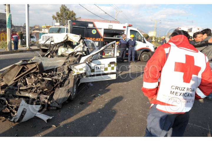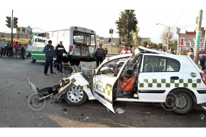 MÉXICO, D.F., 01ENERO2010.- Un sujeto de aproximadamente 30 años, pierde la vida a bordo del taxi que conducía con placas de circulación 4819-JEF del Estado de México. Impactándose contra un microbús de la ruta 49 con placas de circulación 490010 que se encontraba estacionado en el cruce de Av. Periférico a la altura de Av. León de los Aldamas en la colonia San Felipe de Jesús en perímetro de la Delegación Gustavo A. Madero. FOTO: LUIS CARBAYO/CUARTOSCURO.COM