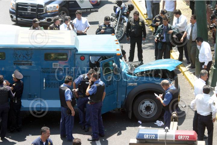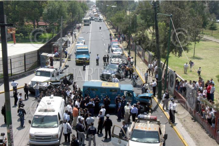 MÉXICO, DF., 25SEPTIEMBRE2002.- Una camioneta de valores de la empresa Tameme, conducida a exceso de velocidad choco contra un poste en periferico oriente y la calle de soto y Gama en la colonia Vicente Guerrero, un custodio murió y dos mas resultaron heridos. FOTO: PEDRO MARRUFO/CUARTOSCURO.COM