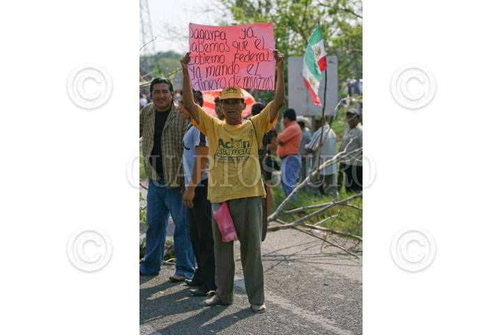 VILLAHERMOSA, TABASCO, 12MAYO2011.- Indígenas chontales continúan en el cierre y bloqueo de la carretera federal Villahermosa-Centla, donde mencionan que de no recibir demandas favorable en su petición del pago en sus afectaciones por inundaciones permanecerán las horas o días necesarios con su postura de no dejar pasar ningún tipo de vehículo. FOTO: MARCO POLO GUZMÁN HERNÁNDEZ/CUARTOSCURO.COM