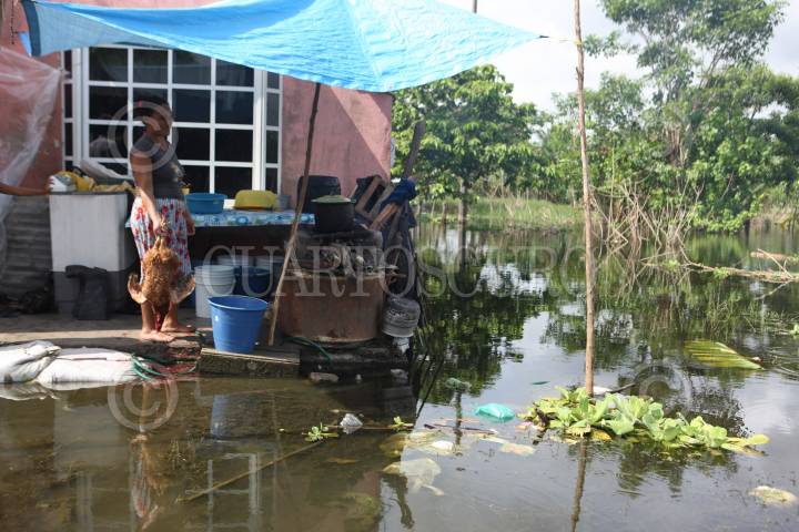 Habitantes de las comunidades chontales de Jiménez, Chico Zapote, Congregación y Cantemoc, sigue padeciendo las afectaciones de las inundaciones provocadas por el desbordamiento del Río San Cipriano, afectando el cultivo, ganado y viviendas.