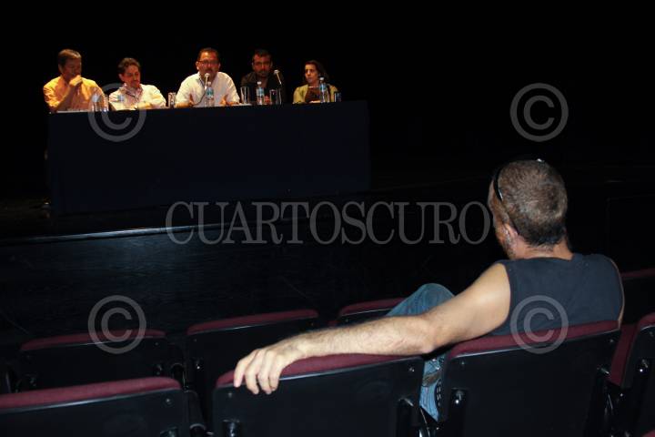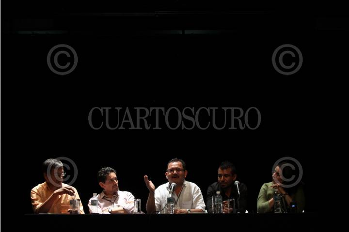 MÉXICO, D.F., 25JUNIO2010.- Carlos Bonfil, crítico de Cine y Alejandro Brito, director del suplemente letra S, Juan Carlos Bautista, escritor, Salvador Irys, director de la Semana Cultural Lesbico-Gay y Alma Rosa Jimenez, directora del Museo Universitario del Chopo. Ofrecieron una conferencia en homenaje al escritor y ensayista mexicano Carlos Monsivais que murió en días pasados. Esto como parte de la Semana Cultural Lésbico-Gay. FOTOS: MISAEL VALTIERRA/CUARTOSCURO.COM