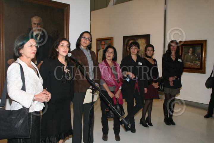 MÉXICO, D.F., 22SEPTIEMBRE2010.- Esta tarde se realizó la inauguración de la exposición "100 Años de la pintura en la Universidad Nacional Autónoma de México", en el recito del Museo Universitario del Chopo. En la imagen, Emma Cecilia García; Julieta Jiménez Cacho; Lucero González; Nina Serratos; Catalina González; Angélica Belleira; Caludia Kemper, quienes fueron que encabezaron la inauguración. FOTO: LUZ ACEVEDO/CUARTOSCURO.COM