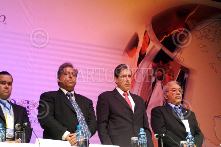 México, D. F. 12MARZO2004.- Sanjiv Chopra, el secretario de Salud Julio Frenk Mora y Guillermo Díaz Mejía guardaron un minuto de silencio en memoria del fallecido doctor Miguel Tanimoto Weki en la inauguración del foro internacional médico. FOTO: Iván Stephens/CUARTOSCURO.COM