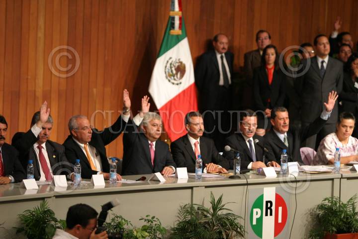 MEXICO, D.F. 12JULIO2005.- El pleno del consejo político nacional del PRI vota la permanencia de Roberto Madrazo en la dirigencia del Comité Ejecutivo Nacional del tricolor, durante la sesión del maximo organo del Revolucionario institucional llevada a cabo en su sede en la ciudad de México. FOTO: Miguel Dimayuga/CUARTOSCURO.COM