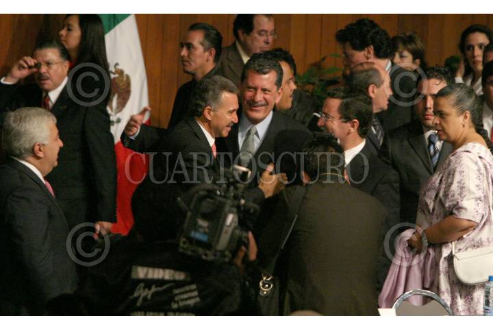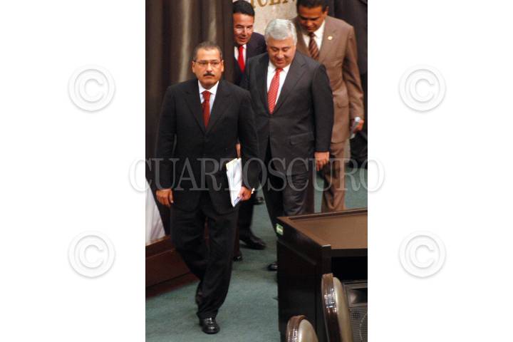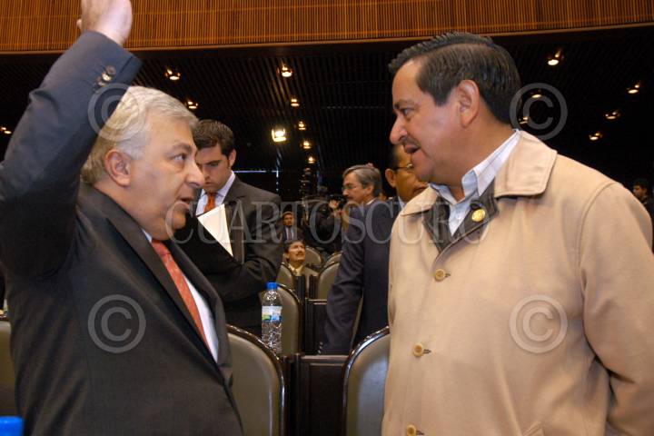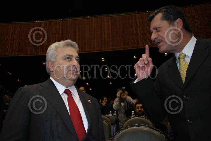 MEXICO, DF 28JUNIO2005.- El presidente de la mesa directiva del congreso de la uniòn Manlio Fabio Beltrones y el coordinador de los diputados priìstas Emilio Chuayfett antes de la aprobaciòn del voto de los mexicanos radicados en el extranjero. FOTO: Miguel Dimayuga/CUARTOSCURO.COM
