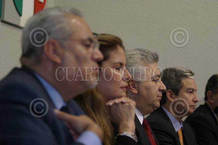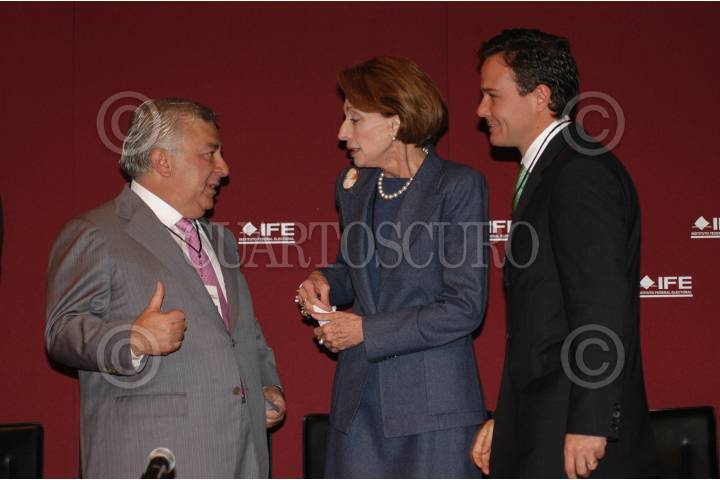 MÈXICO, D.F. 15ENERO2006.- Emilio Chuayfett, Líder de la fraccion parlamentaria del PRI, Rosario Green. secretario general del PRI y Bernardo de la Garza durante el registro ante el IFE de Roberto Madrazo candidato de la alianza por México (PRI-PVEM). FOTO:Miriam Sánchez/CUARTOSCURO.COM