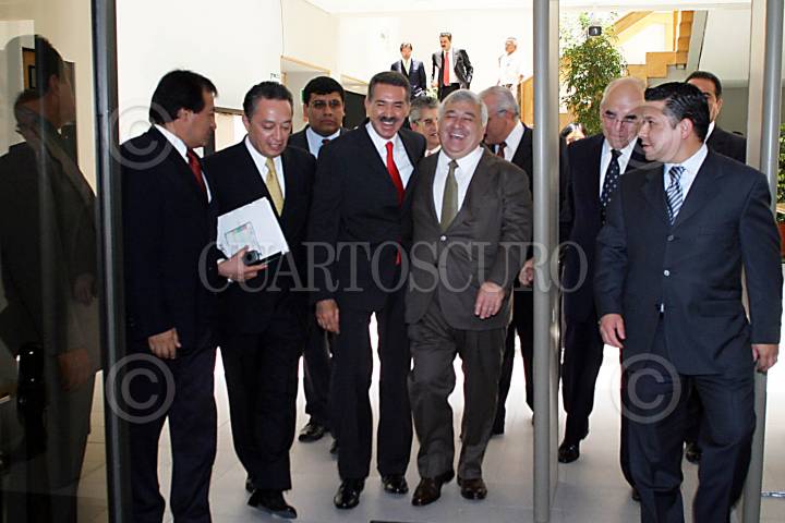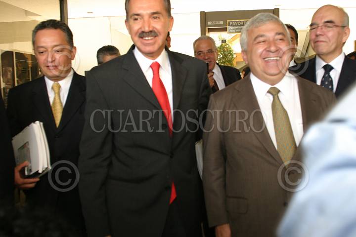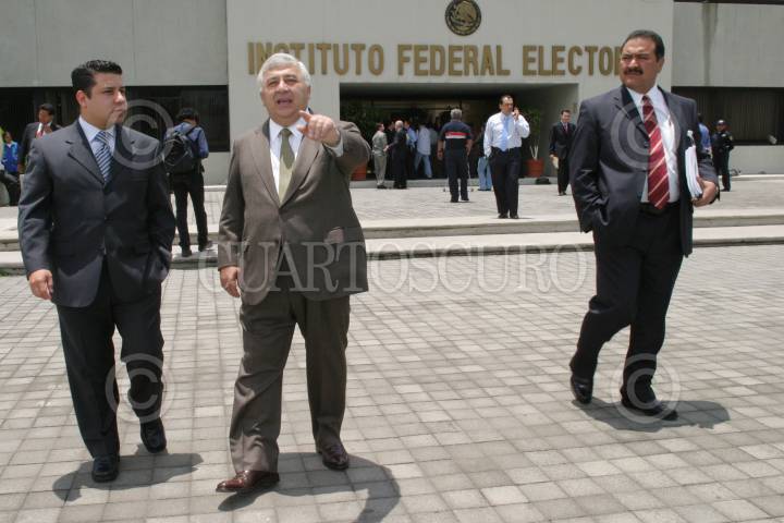MEXICO, D.F. 07JULIO2005.- Los priístas Emilio Chuayfett y Roberto Madrazo salen de la reunión con consejeros electorales del IFE en las instalaciones del instituto en el sur de la ciudad. FOTO: Miguel Dimayuga/CUARTOSCURO.COM