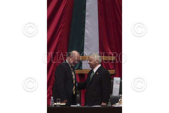 MÉXICO, D.F., 27OCTUBRE2011.- José Sarukhán, ex rector de la UNAM, recibio de manos de Emilio Chuayffet, Presidente de la mesa directiva de la Camara de diputados la medalla "Eduardo Neri" por su destacada trayectoria. FOTO: ENRIQUE ORDÓÑEZ/CUARTOSCURO.COM
