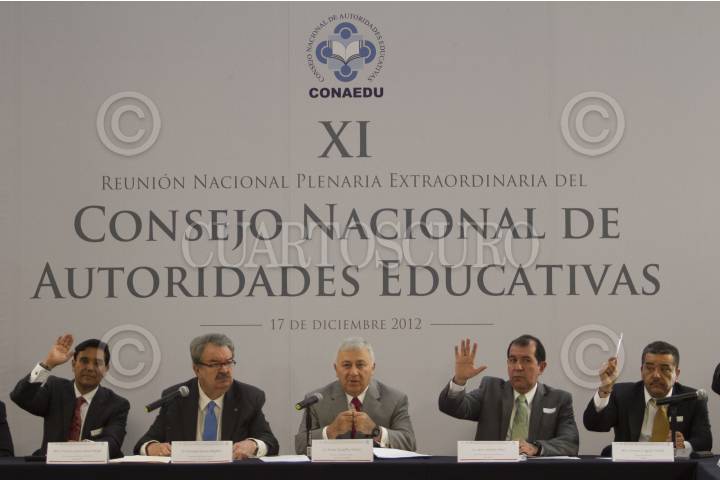 MÉXICO, D.F., 17DICIEMBRE2012.- Emilio Chuayffet Chemor, titular de la Secretaria de Educación Pública encabezo la inauguración de la “Décima primera reunión Nacional plenaria del consejo de autoridades educativas, en las instalaciones de la SEP. FOTO: GUILLERMO PEREA /CUARTOSCURO.COM