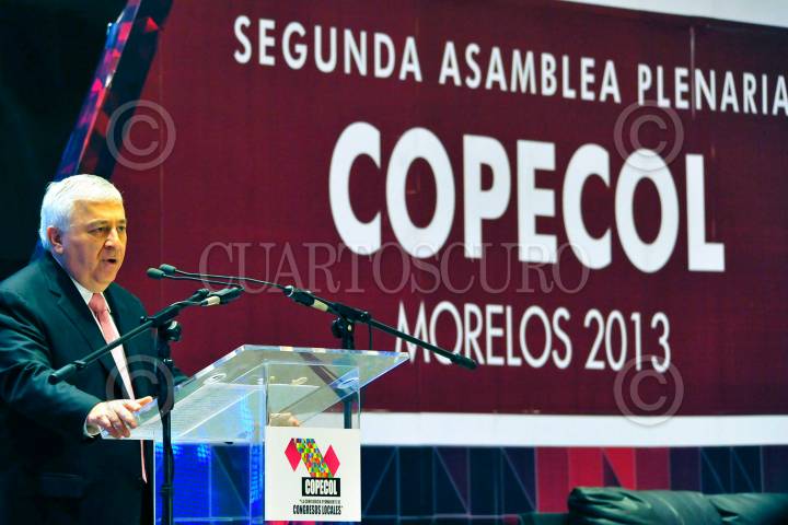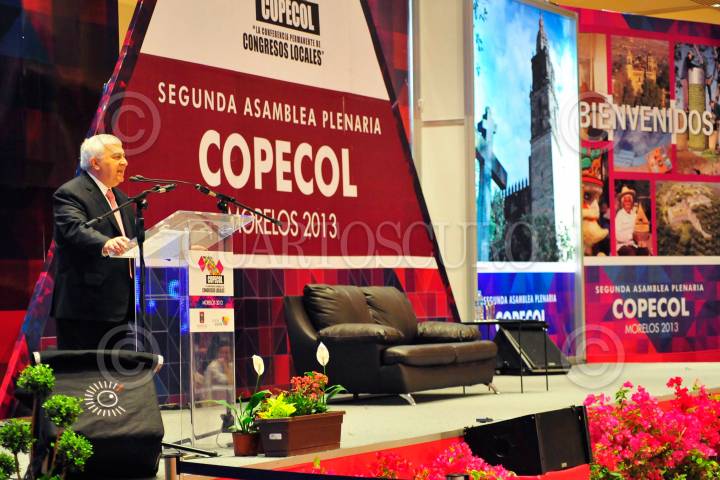 XOCHITEPEC, MORELOS, 07MARZO2013.- El secretario de Educación del gobierno federal, Emilio Chuayffet Chemor, se presemtó en la segunda plenaria de la Conferencia Permanente de Congresos locales (Copecol), donde impartió a los diputados locales del país una ponencia referente la Reforma Educativa. FOTO: ALMA LAFAYET /CUARTOSCURO.COM